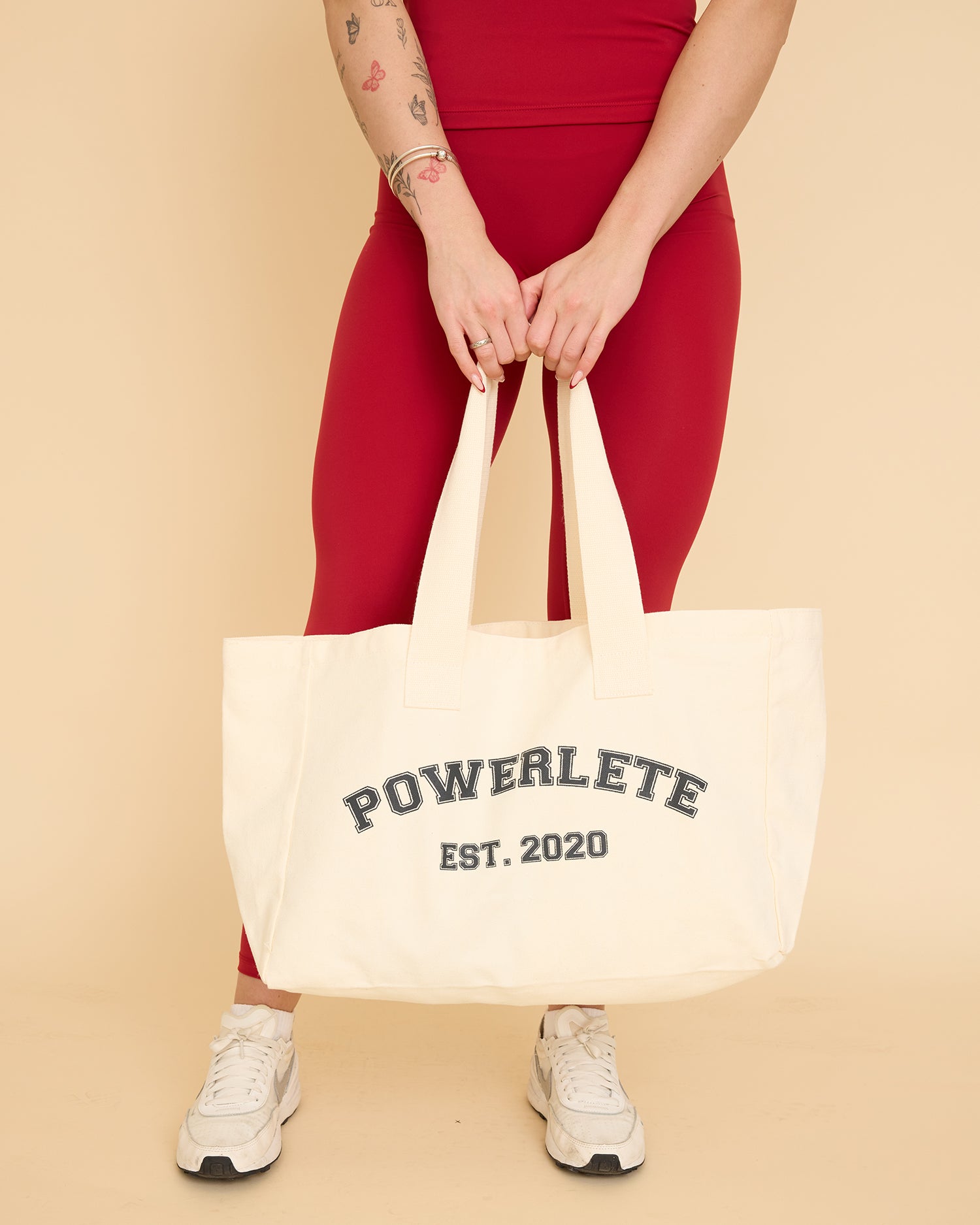 Maak kennis met de Powerlete Varsity Tote - je nieuwe dagelijkse essential. In neutraal beige met een vet zwart varsity-logo is deze tas de perfecte mix van stijl en functie. Of je nu naar de sportschool gaat, boodschappen doet of uitgaat, hij is gemaakt om je drukke levensstijl bij te houden. Praktisch, duurzaam en moeiteloos cool, het is je go-to tas voor alles wat de dag met zich meebrengt.